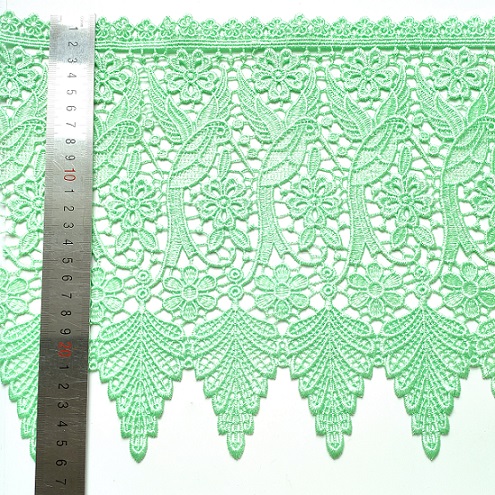 là mẫu thiết kế mới nhất của chất liệu vải ren cao cấp. Vải ren hòa tan trong nước được làm bằng polyester, nó có thể được sử dụng trong quần áo và các sản phẩm dệt gia dụng.