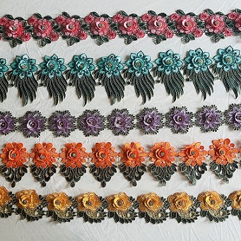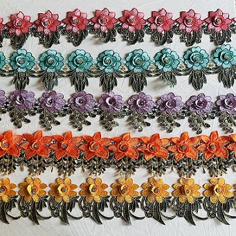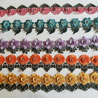 | Tên sản phẩm | Viền ren thêu hoa 3D nhiều màu đính cườm |