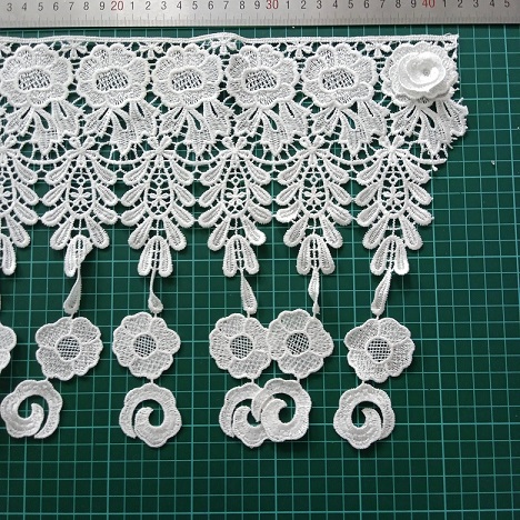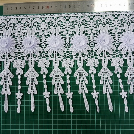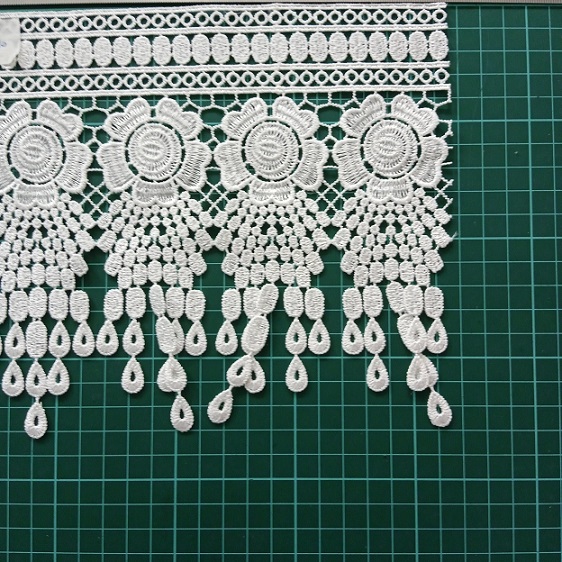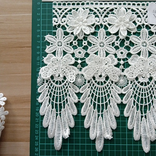 là mẫu thiết kế mới nhất của chất liệu vải ren cao cấp. Vải ren hòa tan trong nước được làm bằng polyester, nó có thể được sử dụng trong quần áo và các sản phẩm dệt gia dụng.