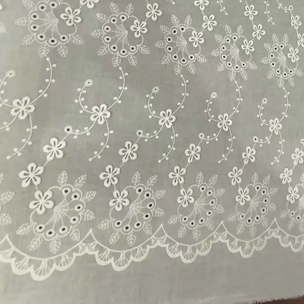 Vải mắt bằng vải cotton thêu này, vải cotton nhẹ, thoáng khí này có tính năng thêu víu tinh tế, mang đến một thiết kế đầy kết cấu quyến rũ, hoàn hảo cho thời trang mùa xuân và mùa hè. Lý tưởng cho váy, áo cánh, rèm cửa và thủ công, nó kết hợp sự thanh lịch cổ điển với sự thoải mái tự nhiên. Các mẫu mắt ** openwork ** tăng cường luồng không khí trong khi duy trì độ bền. Mềm mại, đa năng và dễ may, vải này là một lựa chọn vượt thời gian cho cả trang phục may mặc và trang trí nhà. Có sẵn với nhiều màu sắc và chiều rộng, nó hoàn hảo cho các phong cách lãng mạn, boho hoặc cổ điển.