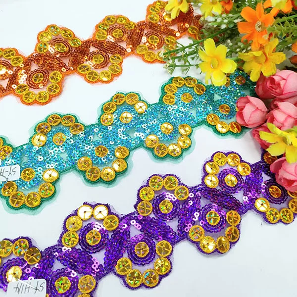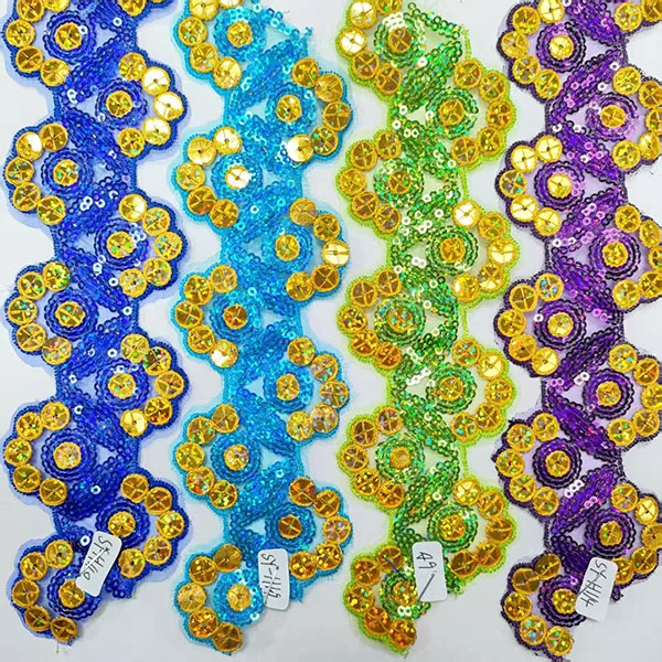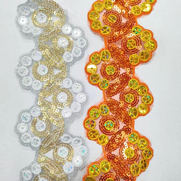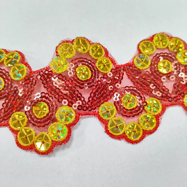 Thêu Trimin ren ren thêu nhiều màu là một loại trang trí ren trang trí có thêu phức tạp, sequin đầy màu sắc và cơ sở lưới. Loại cắt tỉa này thường được sử dụng trong thiết kế thời trang và chế tạo để thêm một chút lấp lánh và quyến rũ cho hàng may mặc, phụ kiện và các mặt hàng trang trí nhà.