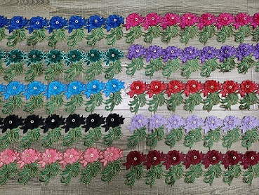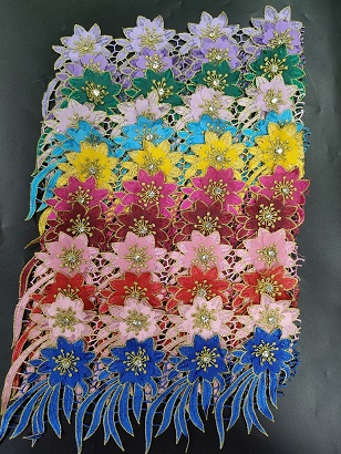 | Tên sản phẩm | Ren polyester nhiều lớp đính kim cương giả |